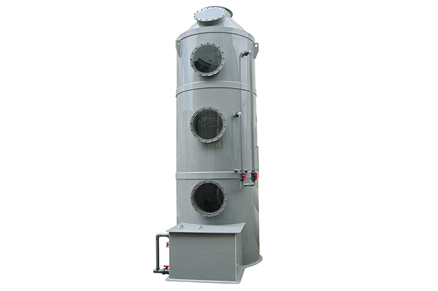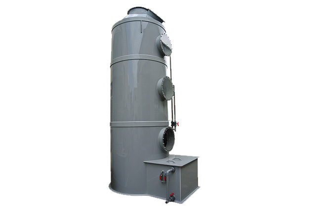 PPs洗滌塔結(jié)構(gòu):洗滌塔由除霧層、噴淋層、填料層、風(fēng)機(jī)、風(fēng)管、塔體、供水箱、供水泵等部分組成。洗滌塔系統(tǒng)的風(fēng)機(jī)組將收集到的廢氣吸入酸霧PPs阻燃洗滌塔內(nèi),流經(jīng)填料層段(氣/液接觸反應(yīng)介質(zhì)),讓廢氣與填充物表面流動(dòng)的藥液(洗滌液)充分接觸,以吸附廢氣中所含的酸性或堿性污物,廢氣經(jīng)過(guò)洗滌后,達(dá)標(biāo)排放。